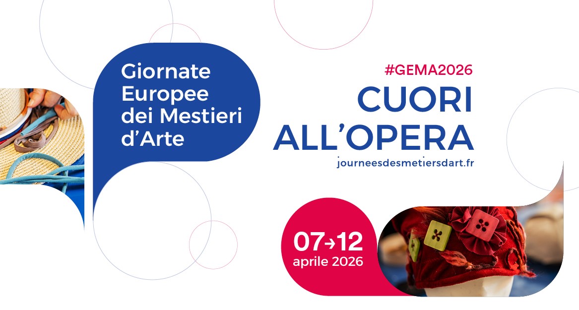 Le Giornate Europee dei Mestieri d’Arte nascono in Francia nel 2002, sono ideate e promosse dall’Institut Pour les Savoir-Faire Français (ex INMA – Institut National des Metiers d’Art) di Parigi, che propone ogni anno un tema specifico. Nel 2023 Artex ha assunto anche il ruolo di coordinatore italiano delle iniziative svolte da altri soggetti a livello nazionale, promuovendo i vari eventi attraverso azioni di comunicazione mirate. Il tema di quest’anno è Cuori all’Opera: al centro di tutta l’esperienza artigiana ci sono il cuore e la passione che ogni artigiano mette nel proprio lavoro. Partecipare alle GEMA con iniziative ed eventi significa entrare in una rete europea che promuove la cultura del fare e la bellezza dei mestieri d’arte.